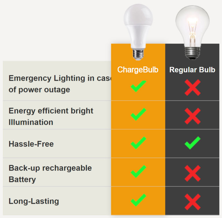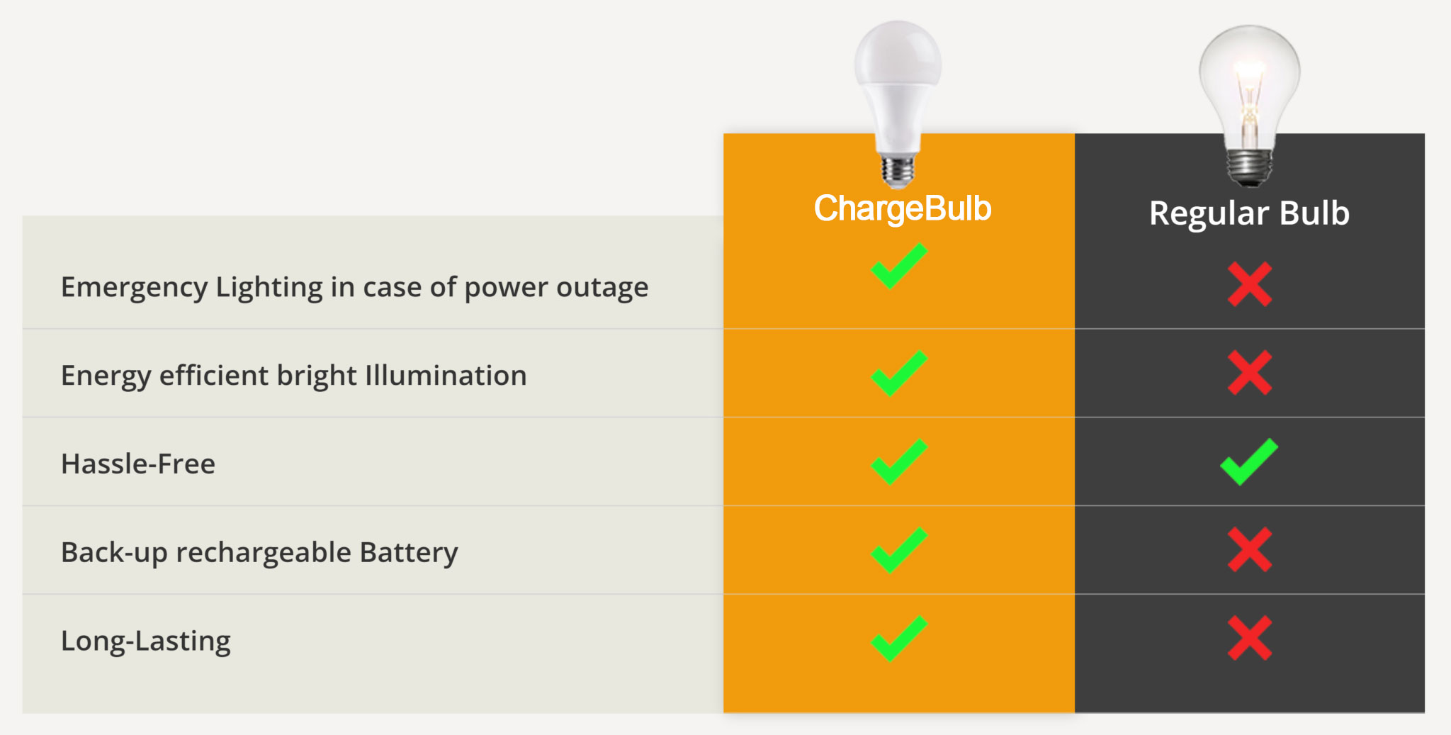 Forget expensive generators, dangerous candles & cold emergency lights — with ChargeBulb, you’ll never be in the dark!