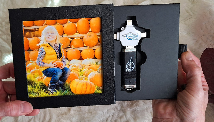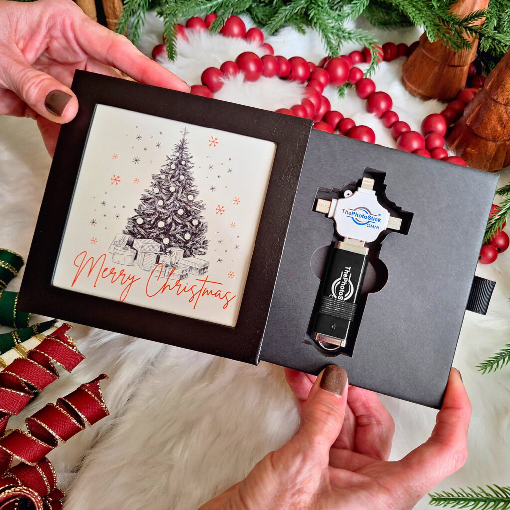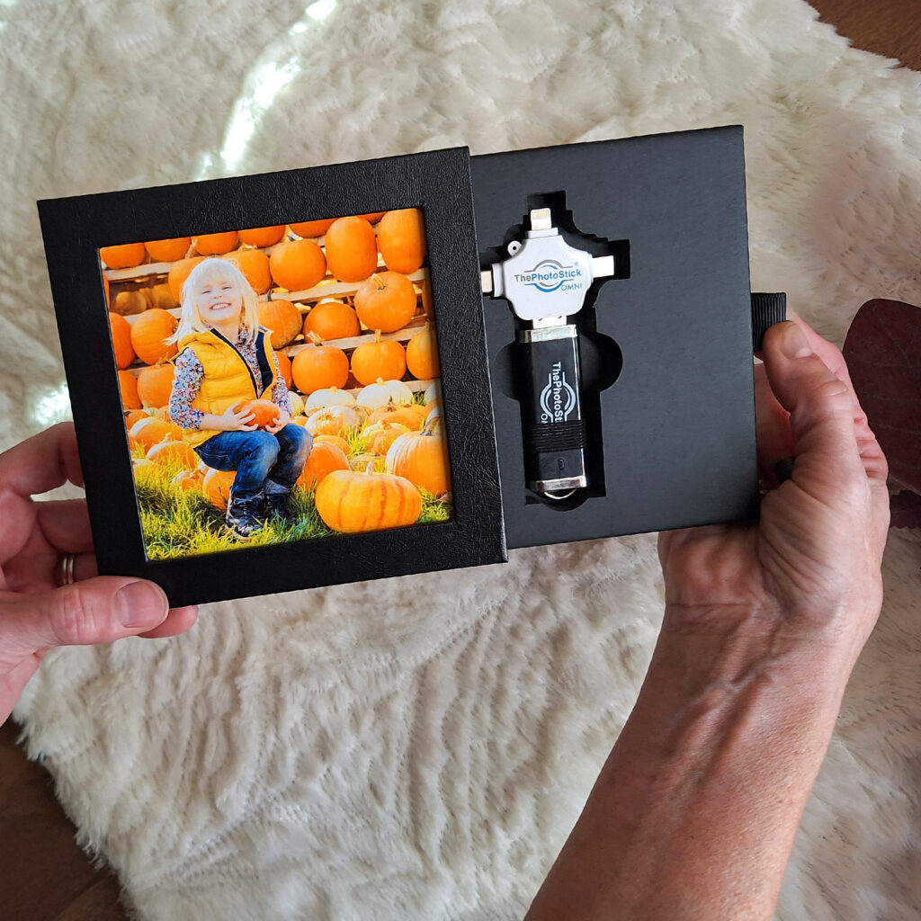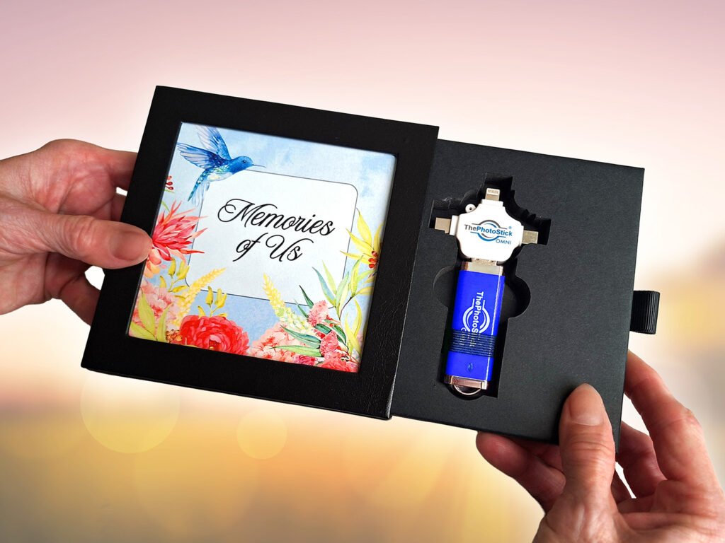 The Keepsake Frame Box transforms ThePhotoStick Omni into something truly personal and display-worthy. Instead of a plain storage case, it’s an elegant, gift-ready box that protects precious memories while showcasing a favorite photo right on the front, making the gift feel thoughtful and tailored to the recipient