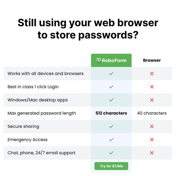 I’ve had roboform for more than ten years, and am totally happy with it…..i couldn’t possibly keep track of all my passwords without it!