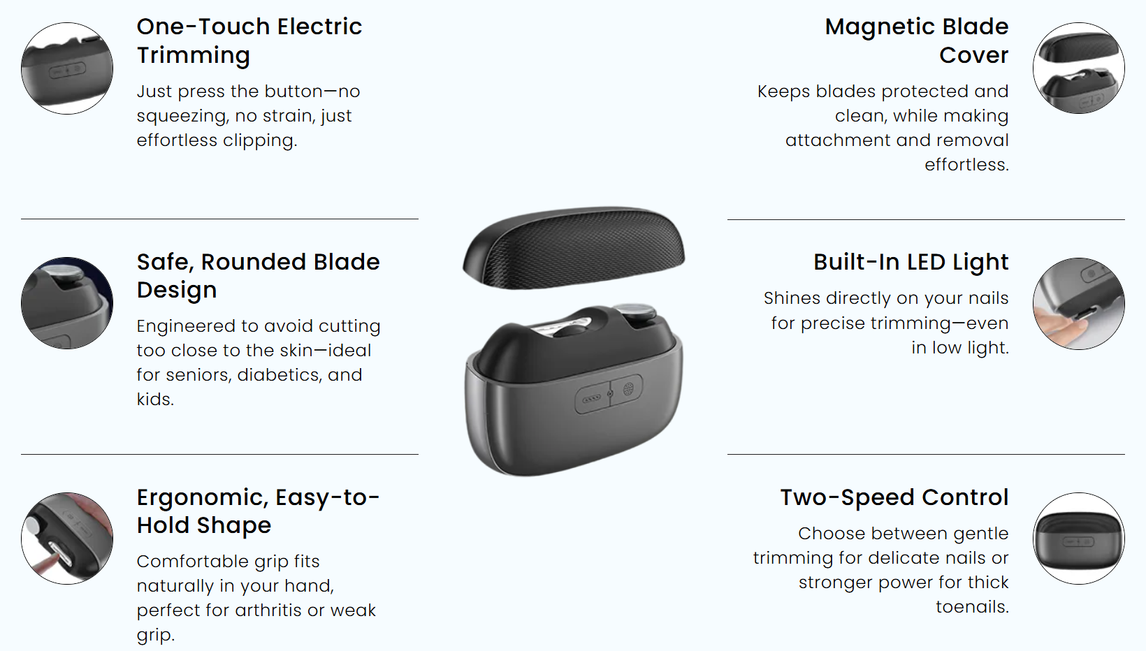 No squeezing. No pressure. No fear of cuts. Just safe, precise nail care—made simple.